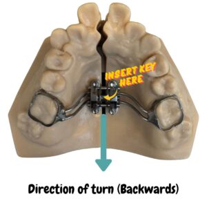 It is common to see a gap appear between the upper front teeth during MARPE treatment. This happens because the palate is widening and each front tooth moves with its half of the jaw. Seeing this gap is actually a good sign that the appliance is working.
