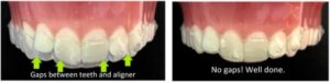 Check that you are FULLY SEATING your aligners onto your teeth. Use Chewies to help you with this.